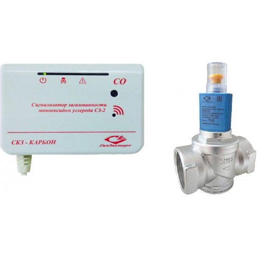 Система контроля загазованности "КАРБОН-2" (СО) Ду32 предназначена для информирования пользователя о загазованности помещений угарным газом, закрытия трубопровода подачи газа с помощью электромагнитного клапана, выдачи сигналов на внешние устройства и получения сигналов с внешних устройств. Система контроля загазованности обеспечивает: • индикацию включенного состояния; • индикацию световыми и звуковыми сигналами информации об аварии (загазованности); • индикацию световыми и звуковыми сигналами информации о неисправности; • закрытие электромагнитного клапана при получении информации об аварии. Характеристики и параметры: Основные технические характеристики приведены в таблице Наименование параметра Значение 1 Напряжение питания от сети переменного тока частотой 50 Гц, В 220±10% 2 Время установления рабочего режима (время прогрева), с, не более 40 3 Время, требуемое для выдачи сигнала на внешние устройство, при срабатывании аварии, с, не более 1 4 Уровень звукового давления на расстоянии 1 метра от прибора, дБ, не более 85 Средняя наработка на отказ составляет не менее 44000 часов. Средний срок службы систем контроля загазованности при условии своевременной замены сенсоров, выработавших свой ресурс и соблюдении требований настоящего РЭ – не менее 10 лет. Конструкция корпусов системы контроля загазованности должна обеспечивать степень защиты в соответствии с условиями эксплуатации не хуже, чем IP20 по ГОСТ 14254. Класс защиты от поражения электрическим током – II по ГОСТ 12.2.007.0. Условия эксплуатации: • температура окружающей среды, °С ...……… от 0 до плюс 50; • относительная влажность воздуха при температуре 25 °С, % … от 20 до 80; • атмосферное давление, кПа ………………….…… от 86 до 108. Состав системы: Система контроля загазованности состоит: • сигнализатор загазованности по угарному газу (СО); • электромагнитный клапан КЗЭМГ-Ду32, управляемый сигнализатором, позволяющий перекрыть подачу газа на исполнительные устройства; • модуль индикации МИ-1, предназначенный для информирования пользователя об аварии и неисправности (по заказу); • модуль индикации МИ-2, предназначенный для информирования пользователя об аварии по природному, углекислому газам и неисправности (по заказу). Подключение устройств системы производится межблочными соединительными кабелями.